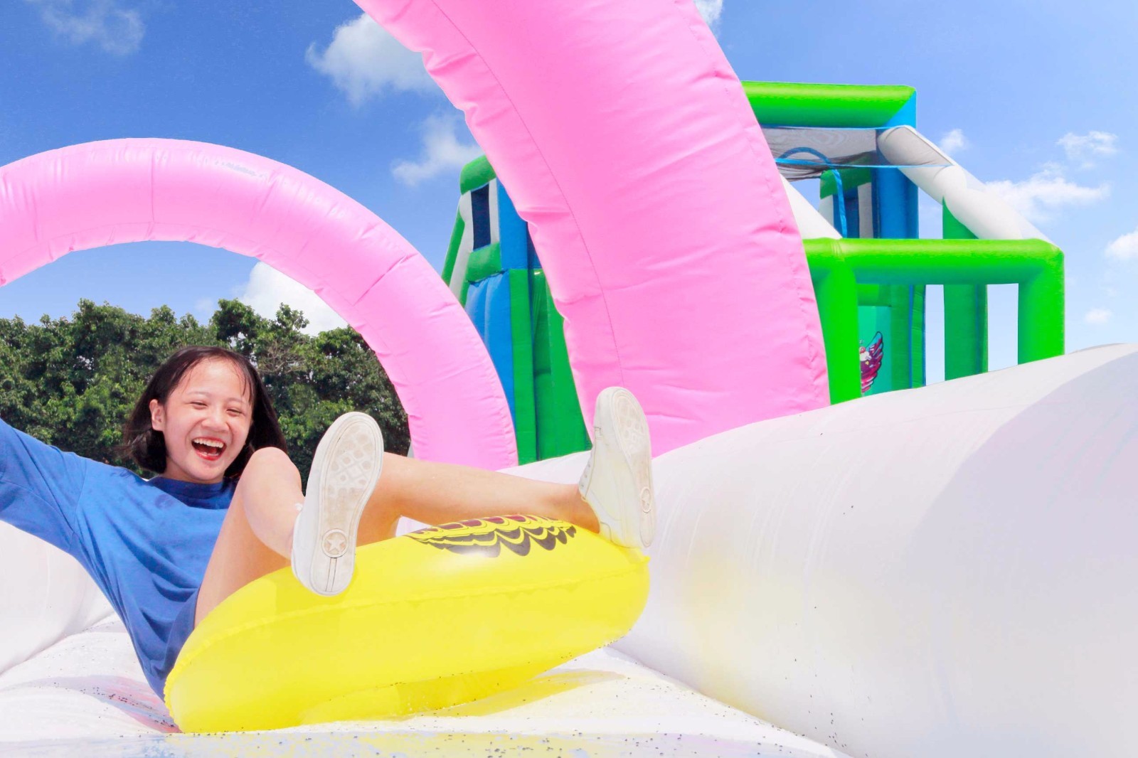 在疯狂5K™五公里的赛程上,你除了奔跑之外,还需要面对十个巨大的障碍关卡。这些关卡需要你通过跳、爬、滑、飞来通过。比如高达数米的跳台和由疯狂5K全新设计的亚洲最大的“疯狂滑梯”,这些一定会让你大呼刺激、过瘾,体验一把拥有超能力是什么样的感觉!